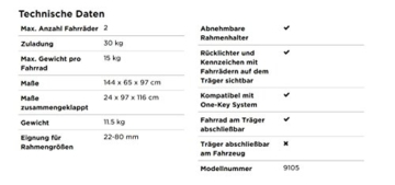 - Zum Abschließen der Fahrräder am Fahrradträger (Schloss im Lieferumfang enthalten)